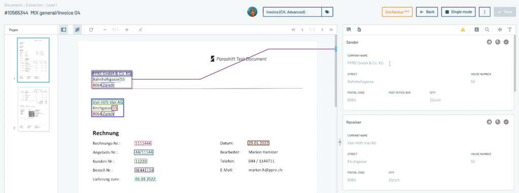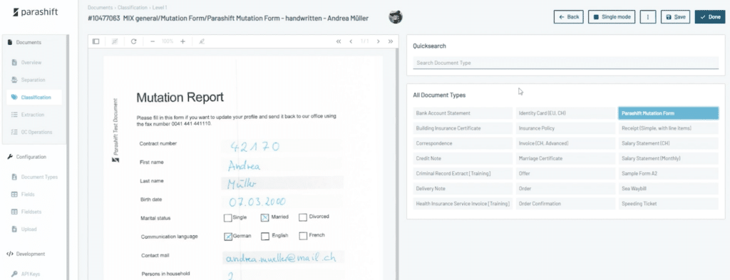 While the Parashift IDP Platform is capable of handling a wide range of business documents, its approach to form processing is particularly noteworthy. Here’s a step-by-step breakdown: